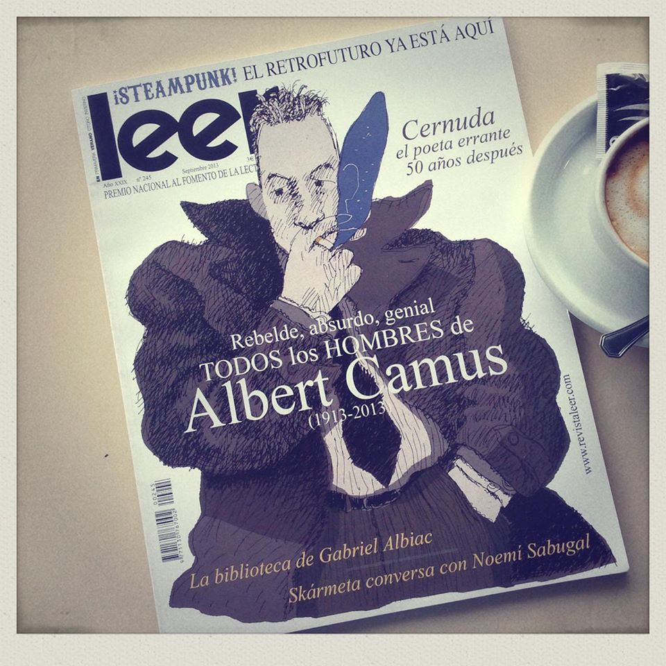 Empecé a trabajar hace unos años en esa revista, cuando el director era Jose Luis Gutiérrez, periodista muy conocido que ha fallecido recientemente, director de Diario 16. Y yo, como hice siempre desde que me dedico a esto, utilicé el siguiente método: mandar un e-mail enseñándoles mi trabajo con la suerte de que al cabo de un tiempo me llamaron y me encargaron hacer una sección todos los meses para esa revista y desde entonces debo llevar 6 años más o menos haciendo una colaboración mensual que es, además, de las que más satisfacciones me da: se trata de hacer una caricatura de un escritor ya fallecido. Estoy haciendo unos trabajos que me gustan mucho y que algún día me gustaría recopilarlos todos en un libro. Estoy muy contento con ellos, de hecho me acaban de encargar la portada del número de verano.