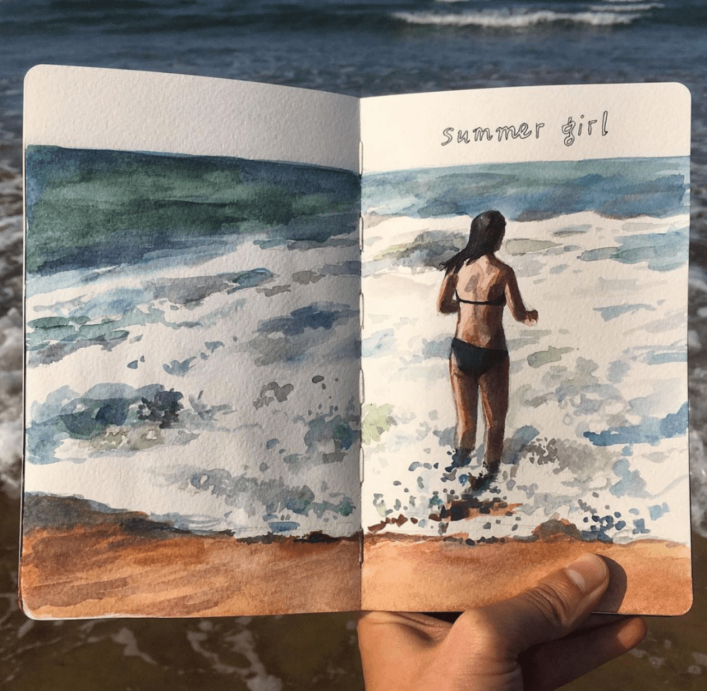 Tendré unas 15 pero ya desde la época de la facultad trabajaba en cuadernos, es un formato que me gusta mucho aunque entonces eran un poco más dispersos, en Roma hice un par de cuadernos de rincones de la ciudad que dibujaba en vivo. Fue con la primera moleskine que empecé a trabajar de forma temática y con un esquema unificado. Al principio eran ilustraciones en blanco y negro, con mucho trabajo de dibujo que poco a poco fueron evolucionando al incluir las acuarelas, abriendo un mayor abanico de posibilidades y jugando a expandir ese dibujo con la realidad en la que me inspiraba, es una manera de jugar con las imágenes. Algo importante para mí, divertirme, evolucionar y no repetirme.