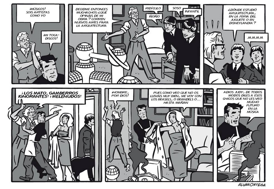 Álvaro Ortega acaba de publicar junto con Iñaki García la Antología del la British Invasión (Sílex, 2022), en este libro sus ilustraciones relucen como lo hacían las canciones de los Beatles o los Who en los años 60. Cuenta con una dilatada trayectoria como ilustrador para periódicos, revistas, portadas de discos, sellos discográficos y, además, se adentró de lleno en el mundo del cómic publicando la serie Los Arquitectos. Hablamos con un artista pop por naturaleza.